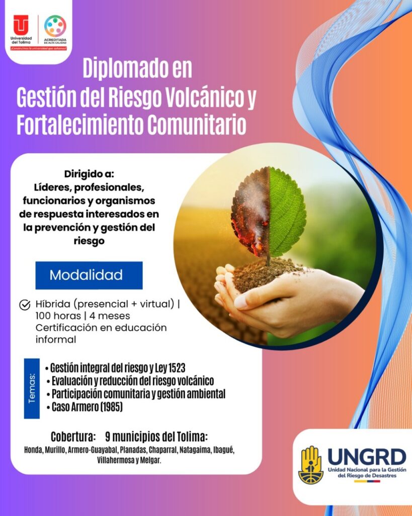 Universidad del Tolima y UNGRD lanzan Diplomado en Gestión del Riesgo Volcánico y Fortalecimiento Comunitario