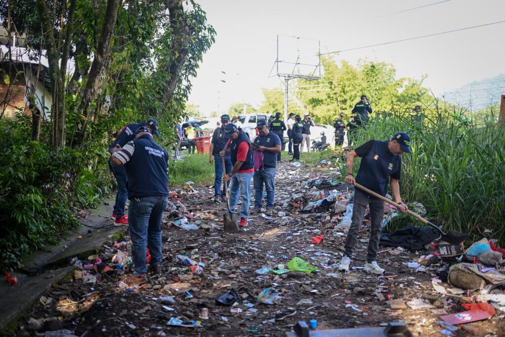 En una acción conjunta entre la Administración Municipal y el Inpec, fue recuperada la ronda hídrica de Fuente de Los Rosales, un punto que presentaba alta acumulación de escombros y residuos sólidos, arrojados en su mayoría por habitantes en condición de calle.