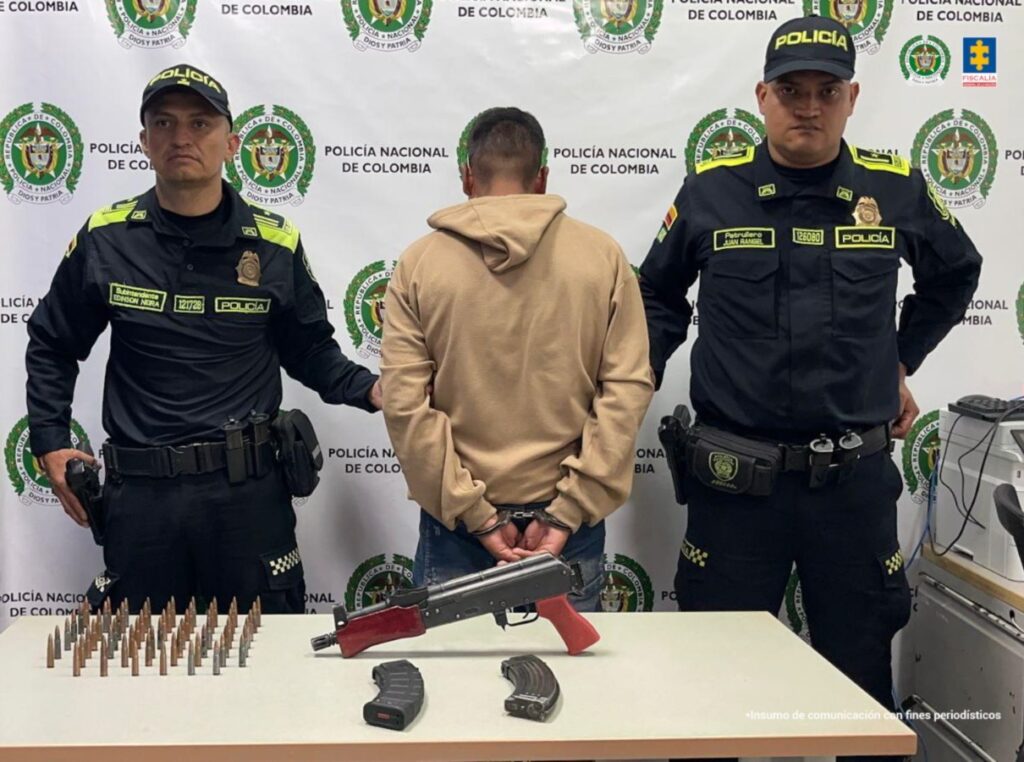 Los hechos ocurrieron el pasado 4 de abril, en la vía que comunica Ibagué con El Espinal (Tolima), durante un registro realizado por la policía de vigilancia, cuando fue detenido Ossa Chimbaco, que se movilizaba en una motocicleta, y se le encontraron un fusil calibre 7.62 con 2 proveedores y 60 cartuchos para dicha arma.