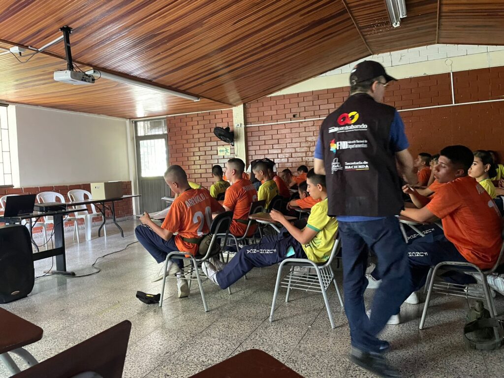 La actividad, desarrollada en articulación con la Federación Nacional de Departamentos (FND) y la Secretaría de Hacienda del Tolima, estuvo dirigida a alumnos de noveno, décimo y undécimo grado. En total, 113 jóvenes participaron de la capacitación , en la que conocieron los riesgos del contrabando y el impacto negativo que genera en la salud y en las finanzas del departamento.